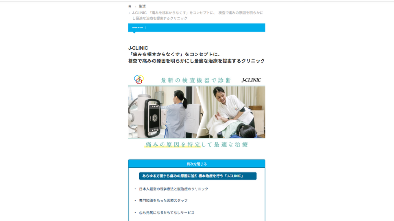 デジタルワイズにも当院の紹介情報を掲載しています。J-CLINIC で何ができるのか、各院の問い合わせ先などもわかりやすくまとまっている記事です。