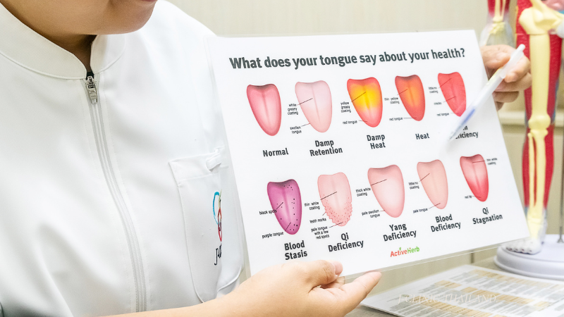 鍼灸漢方科の治療では、タイ人の中医師の先生が体質タイプの診断、治療効果について中国伝統医学の用語を使って説明します。